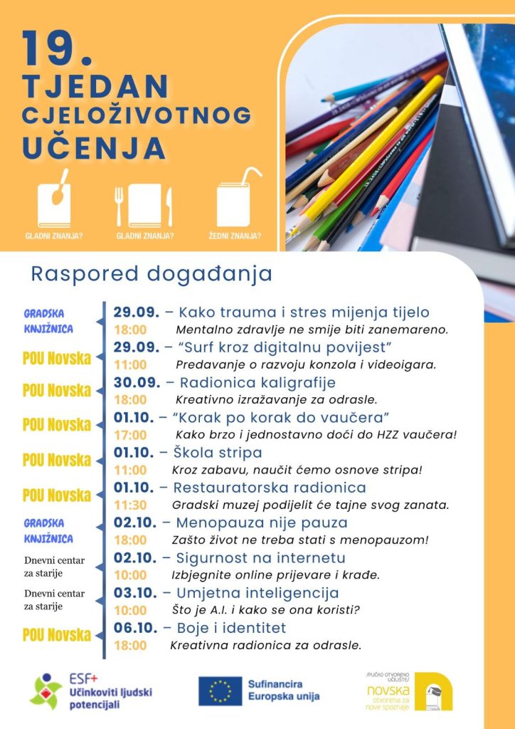 Od ponedjeljka, 29. rujna do nedjelje 5. listopada 2025. godine širom zemlje održava se 19. Tjedan cjeloživotnog učenja pod sloganom „Gladni znanja?” i “Žedni znanja?”.