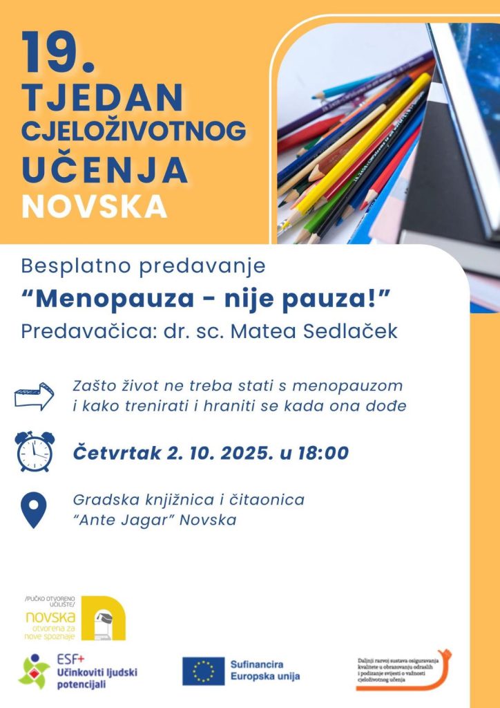 U četvrtak, 2. listopada 2025. u 18:00 sati “Menopauza – nije pauza!” – predavačica dr. sc. Matea Sedlaček
